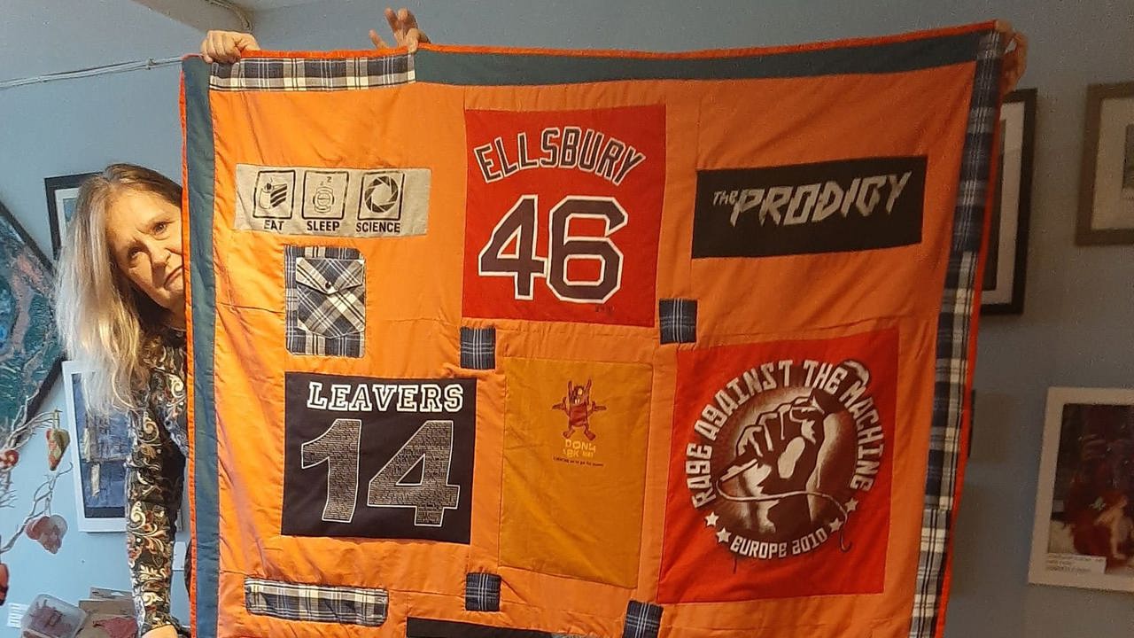 Now the quilt lies folded over a chair in my lounge and I find it hard to touch. One day it’ll be proudly displayed on a wall or bed but for now, it’s finished and cherished – but a stark reminder of who I have lost and how much he was loved.
